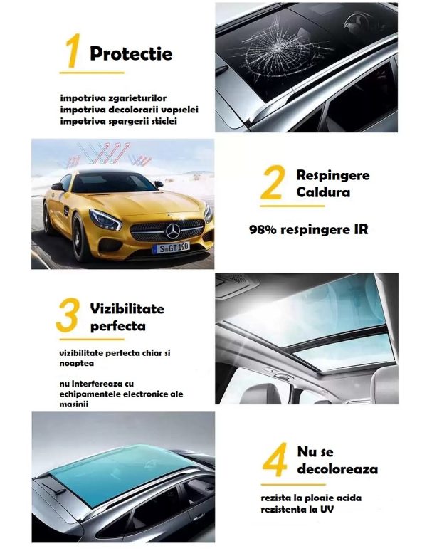 5 septembrie 2025Folie PPF Protectie Plafoane Panoramice – 98% IRR , respingere caldura